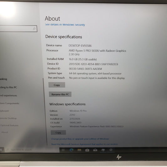 HP EliteBook 855 G8 15.6" Ryzen 5 Pro 5650U 2.3GHz 16GB RAM 256GB SSD