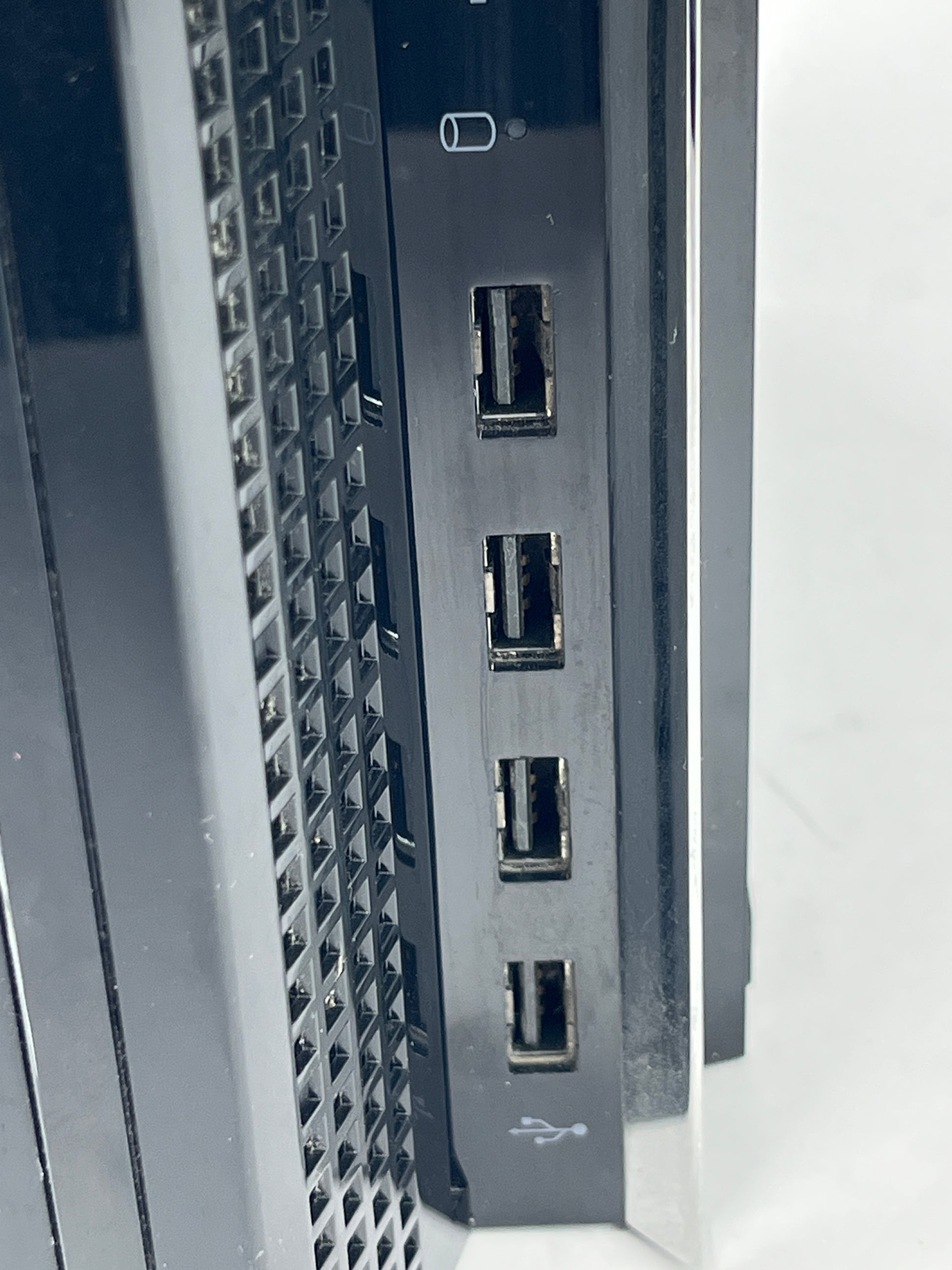 This console operates smoothly, powering on and off without issue and reading game discs efficiently. It has been reset to factory settings with all previous accounts removed. All ports are fully functional and clean, and the eject button operates flawlessly.