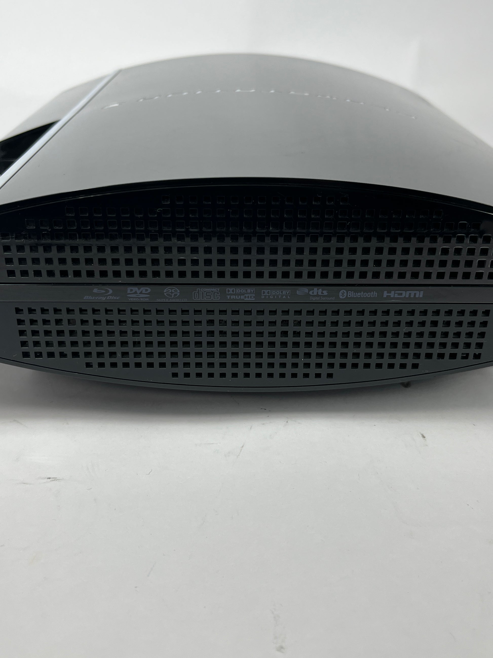 This console is in good pre-owned condition, displaying some noticeable scuffs, scratches, and wear. Both the top and bottom of the unit have minor yet visible marks. For a detailed view of the item’s condition, please refer to the close-up photos provided of the actual product for sale.